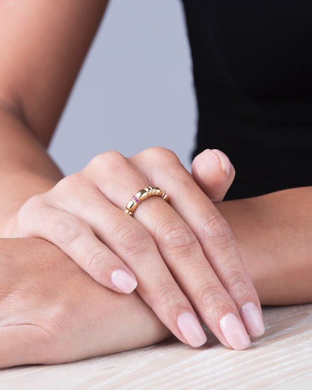 The Cob ring is available in Platinum, Fairtrade 18ct Yellow Gold and Silver with Natural Diamonds, Laboratory Diamonds, Sapphires and Rubies.