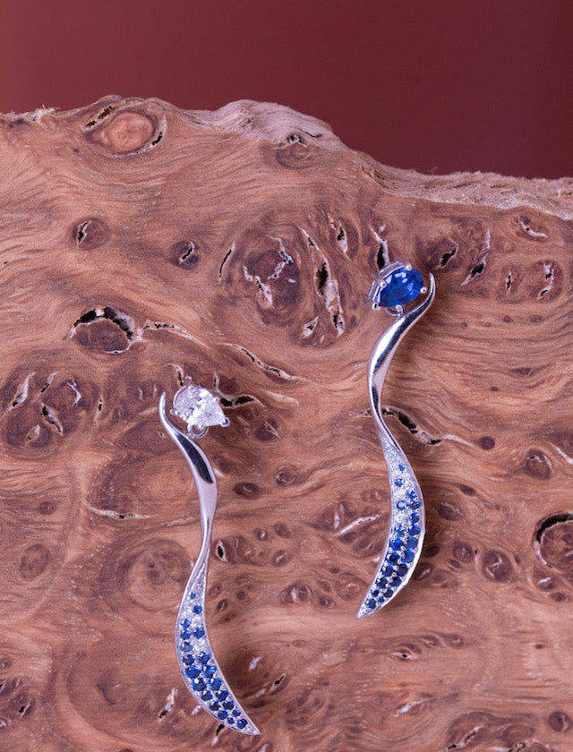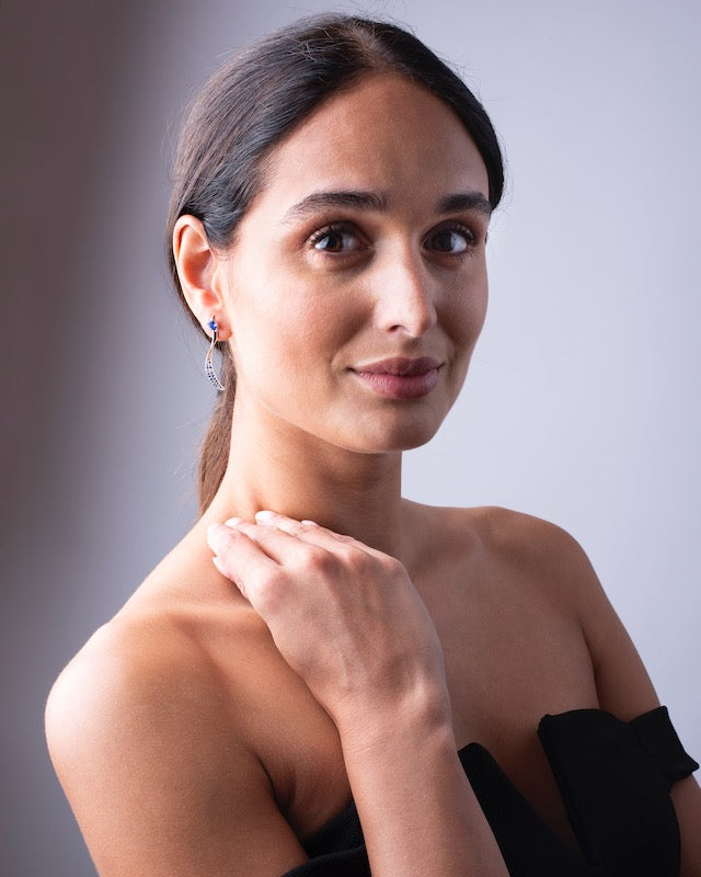 The Sprite earrings are available in Platinum only with Sapphires as standard and a choice of natural or laboratory Diamonds.
