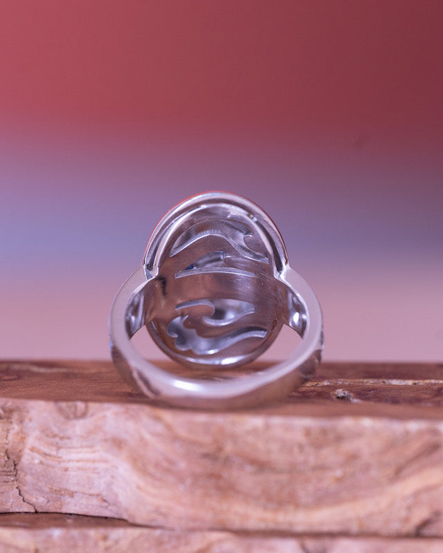The Wave ring is available in Platinum with Sapphires only. The largest sapphire in the Wave ring, the crest of the wave, is carefully chosen to have a combination of transparency and blue colouring to represent the appearance of water. This is a naturally occurring phenomenon that gemologists call ‘zoning’. Because it is naturally occurring every one will be unique.